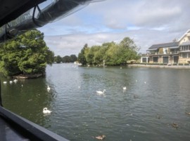 We passed through Boveney lock, and sailed as far as Bray, passing Dorney Lake and some fantastic riverside properties. The commentary was clear and informative and we all had good view.